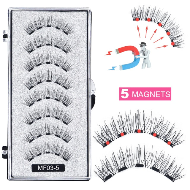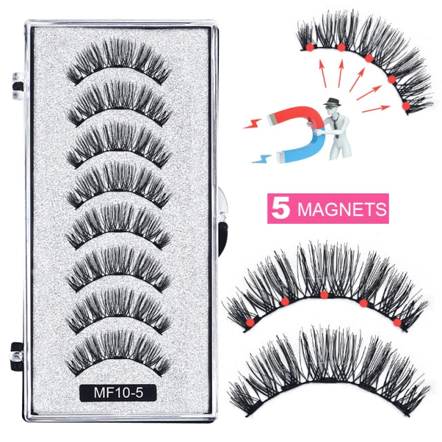 Hand Made Magnetic 8 Piece Reusable Natural Mink False Eyelashes With Magnetic Tweezer Set