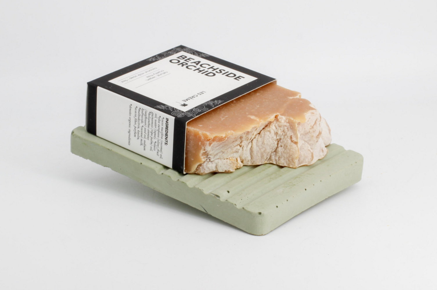 The soap dish comes with rubber feet to protect your countertop and allow the concrete to dry out between uses.
